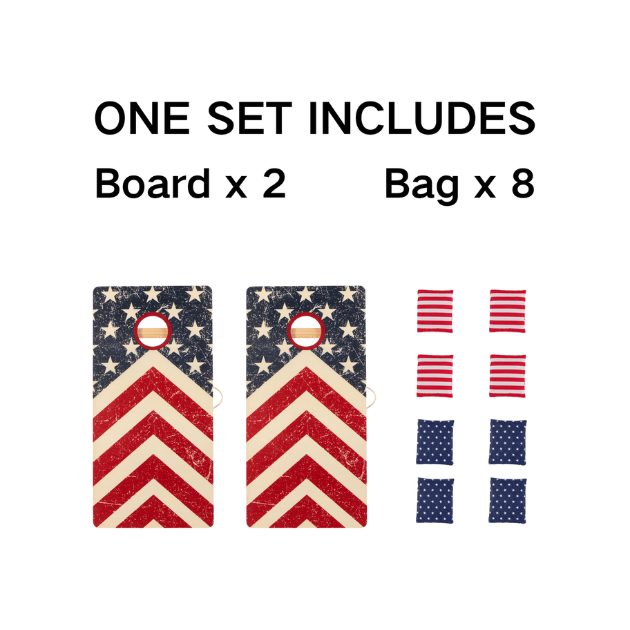 Patriotic American Flag Design: This cornhole set showcases a bold and vibrant American flag-inspired design, featuring classic red, white, and blue colors. The patriotic theme makes it perfect for national holidays, family gatherings, or any event where you want to show off your love for the USA.