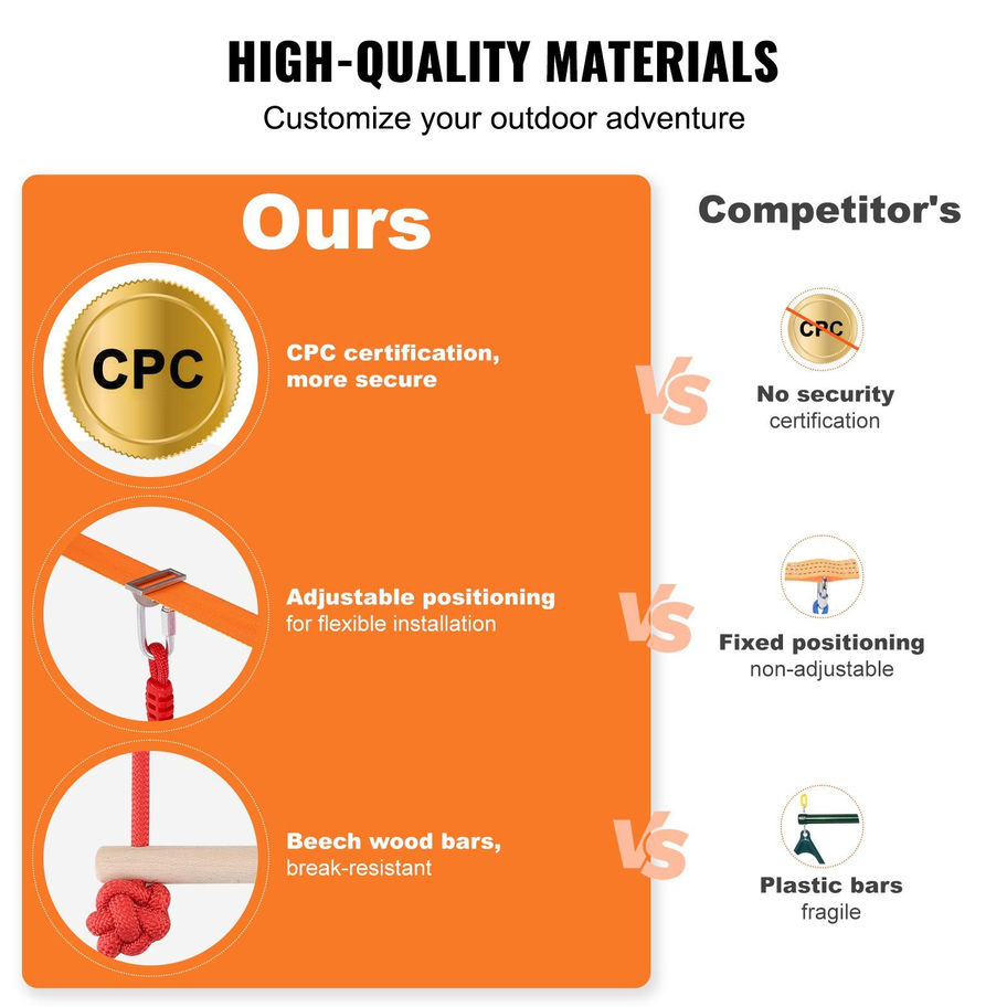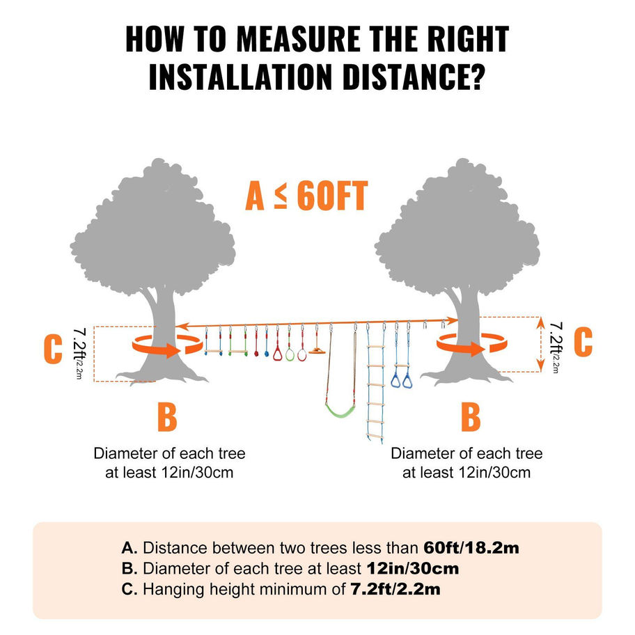 Quick Installation and Disassembly: The outdoor playset equipment can be assembled in just 5 minutes. There's no need for a wide flat area in your yard; just fix it between two trees or poles 20 to 40 feet apart to start customizing your obstacle challenge game! It's an ideal alternative to traditional playgrounds, offering a convenient and flexible backyard challenge game for children of various ages and skill levels.